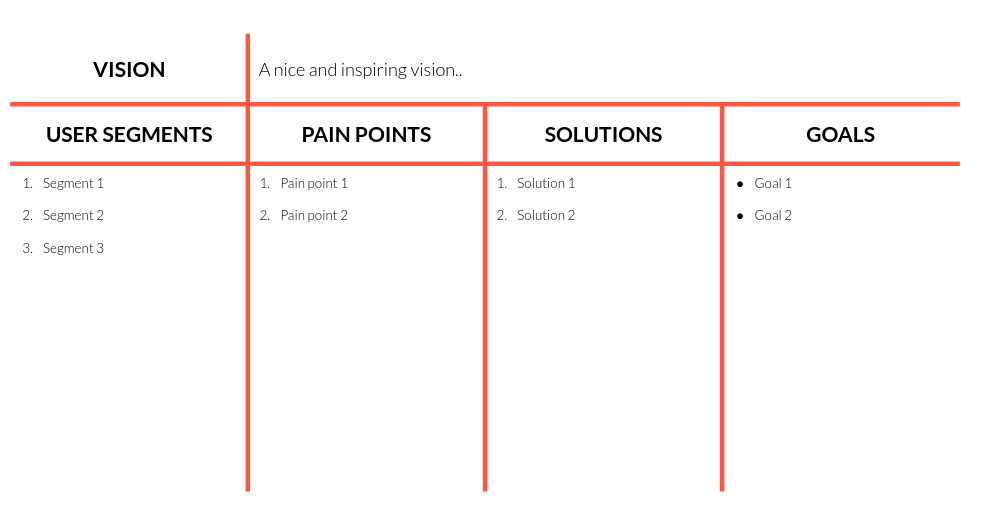 Pour conclure sur la vision produit, voilà mon template, fortement inspiré de la Product Vision Board de Roman Pichler